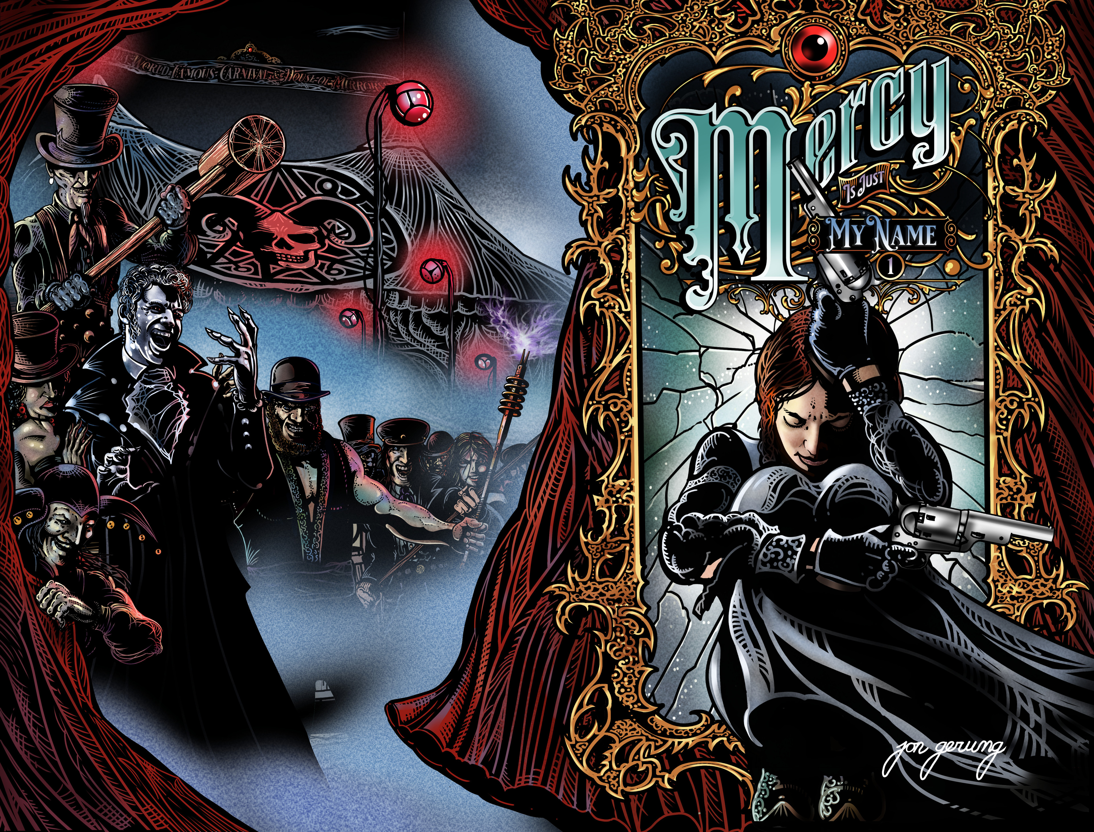 “In the twilight, two bands of strangers came to the desert mining camp of Perdition. The first, a circus of devil worshippers out of the Dusk Lands, followed not long after by a preacher woman in her one-horse medicine wagon.